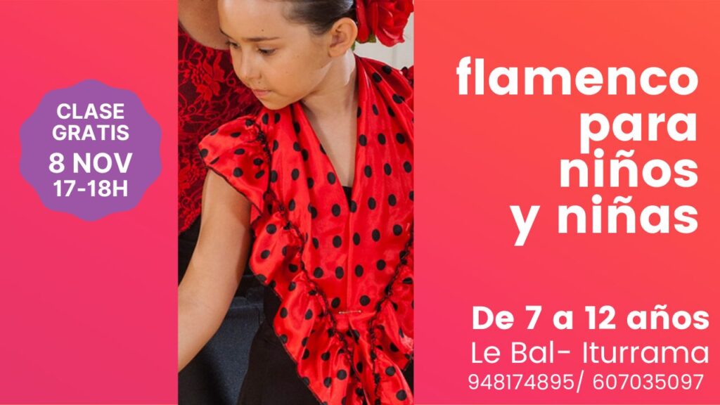 Clases de flamenco para niños y niñas de 7 a 12 años en Le Bal- Iturrama Pamplona (C/Padre Barace, 3).
