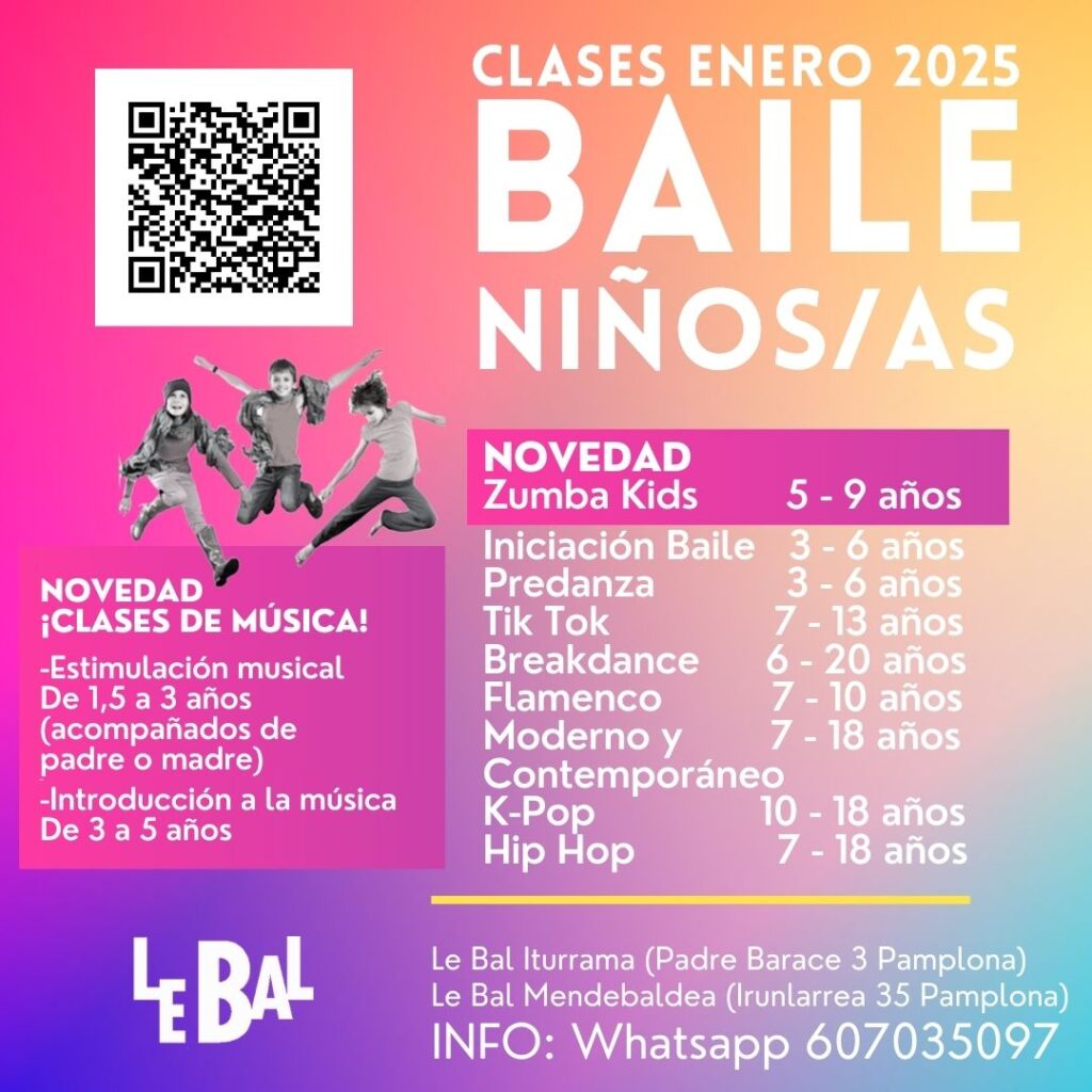 En Le Bal ya hemos abierto las inscripciones para empezar en Enero 2025 nuevas clases de baile para niños y niñas a partir de 3 años, adolescentes y adultos y clases de puesta en forma (pilates, zumba y entrenador personal). Además, clases de música para niños y niñas a partir de un año y medio.